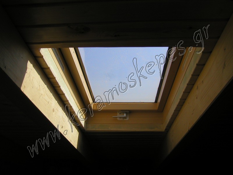 Παράθυρο οροφής επάνω σε ξύλινη στέγη