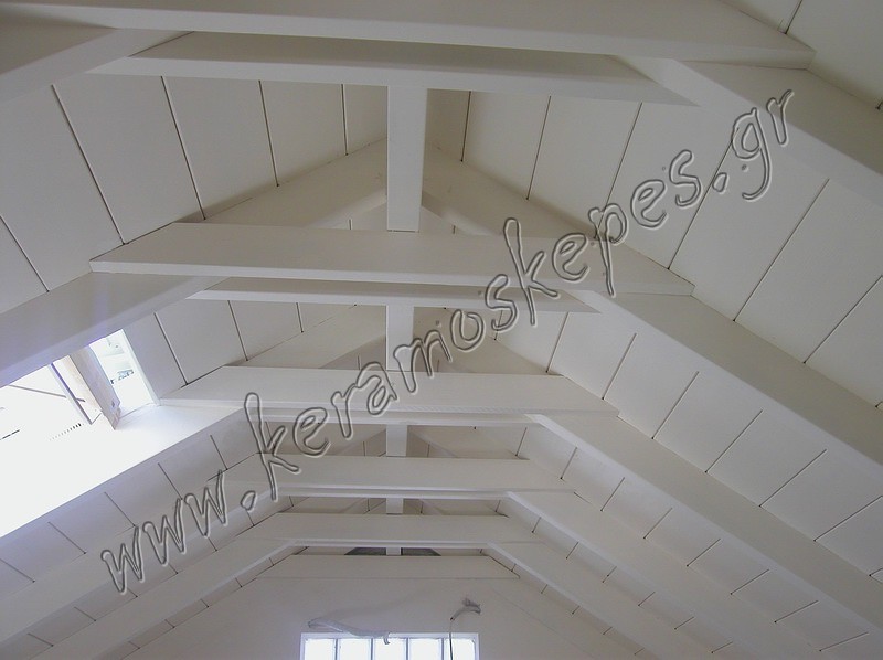 Κατασκευή ξύλινης στέγης χρωματισμένη