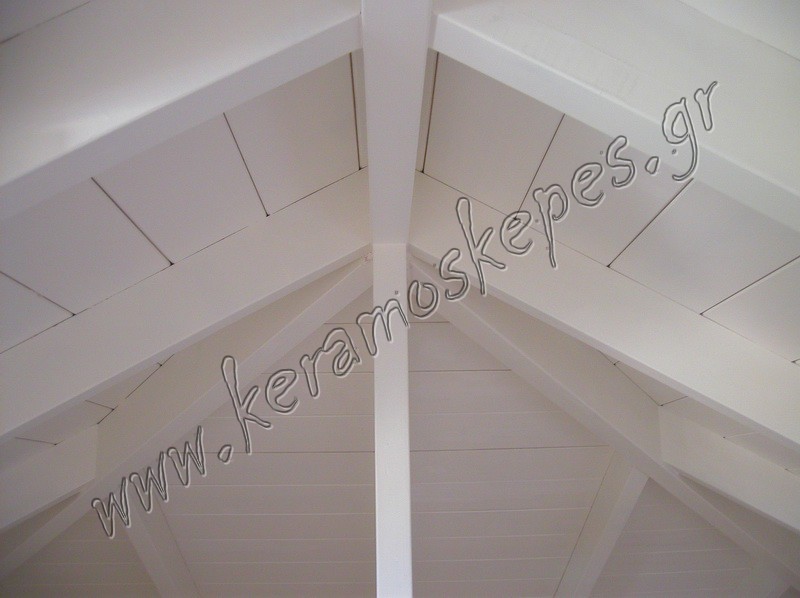 Κατασκευή ξύλινης στέγης χρωματισμένη