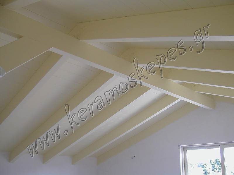 Κατασκευή ξύλινης στέγης σοφίτας χρωματισμένης