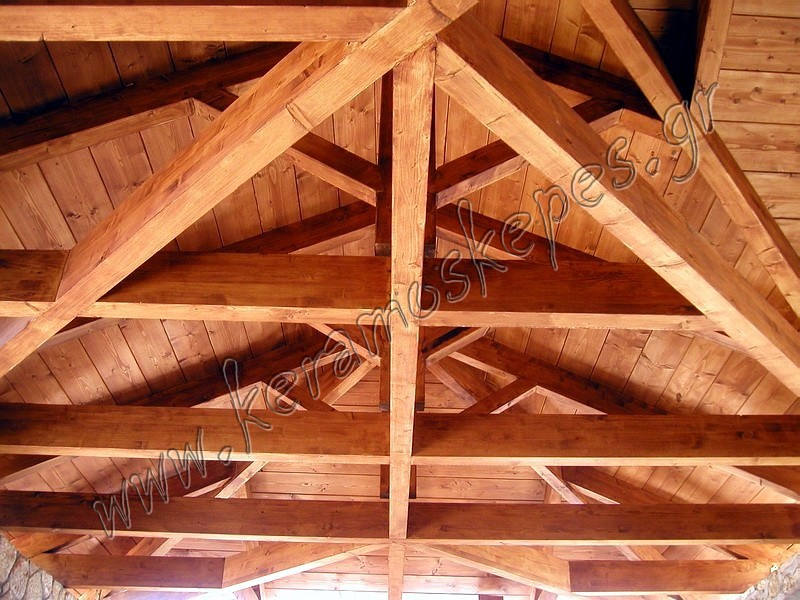 Ξύλινη στέγη με κατασκευή ζευκτών και τάβλα πλανισμένη