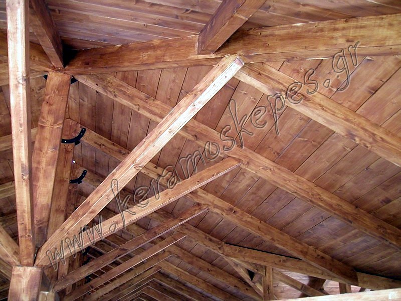 Ξύλινη στέγη με κατασκευή ζευκτών και τάβλα πλανισμένη