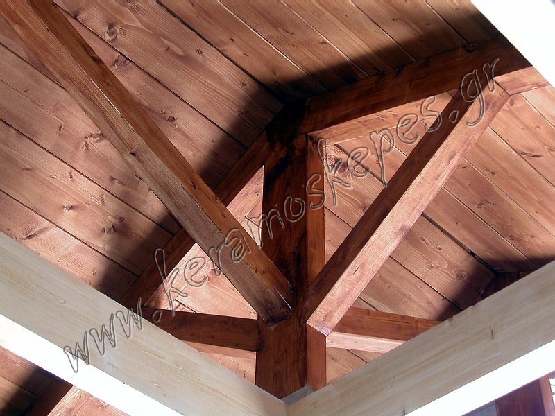 Ξύλινη στέγη με κατασκευή ζευκτών και τάβλα πλανισμένη